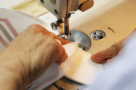 生地の裏張りから、裁断、縫製、プレスまでを自社工場内で行える設備を完備しております。